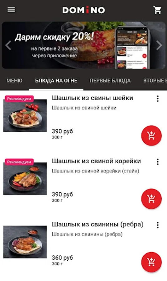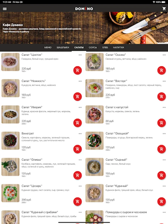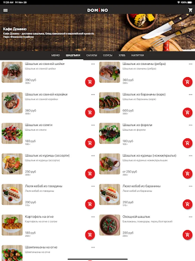 Application for the delivery of barbecue, dishes of Caucasian and European cuisine in Naro-Fominsk and the region.