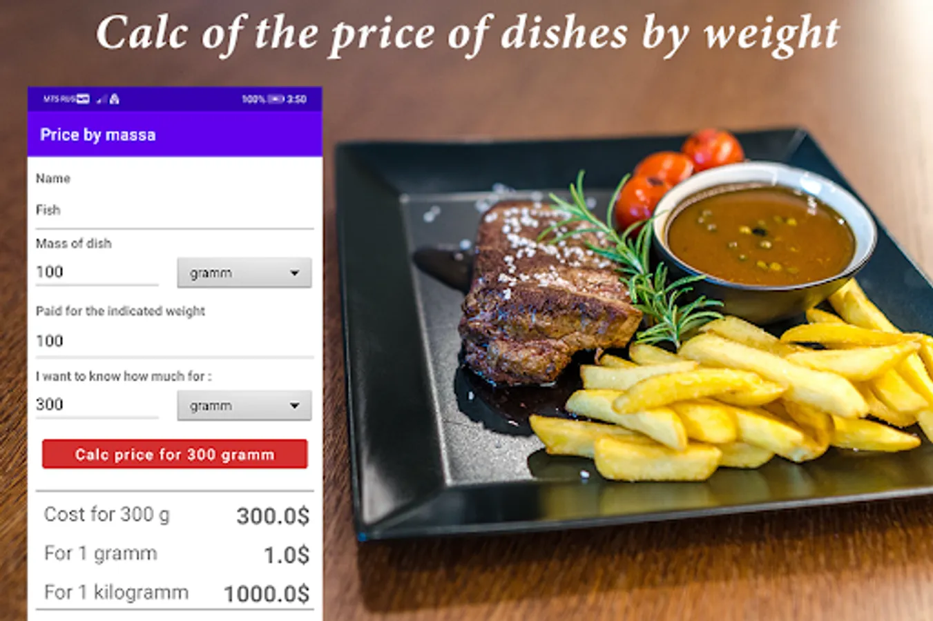 If suddenly you need to find out the price for half a portion, then by long pressing in the calculator menu, select 👉Half portion. The price of the selected dish will be halved.
