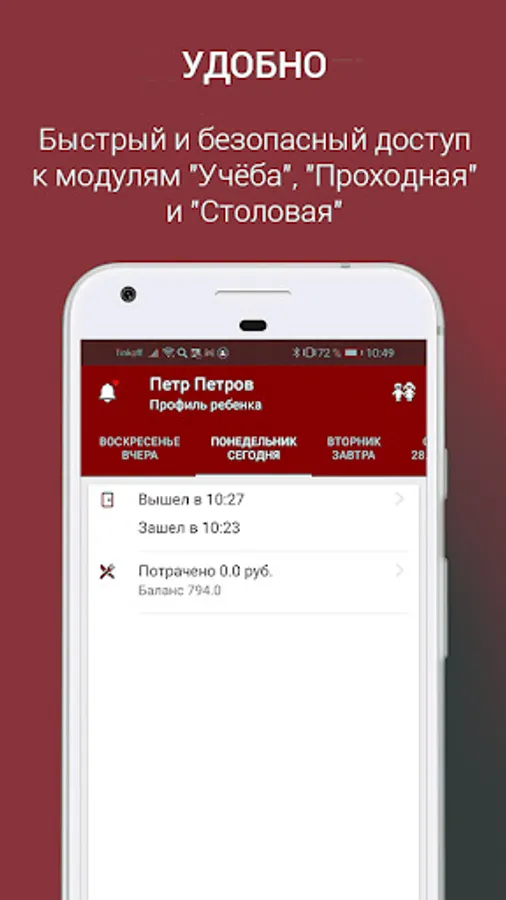 "Canteen" - allows you to make cashless payments in the canteens of the university, remotely view the menu and pay for meals through a personal personal account without a bank card or cash.