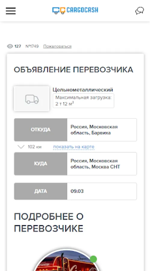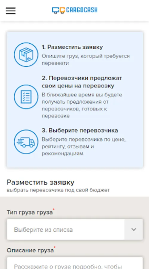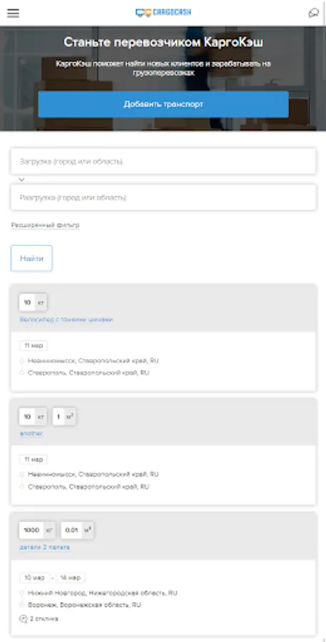 CargoCash is an online cargo transportation service where cargo owners communicate with carriers directly without intermediaries. Here you will find profitable transportation at attractive prices.