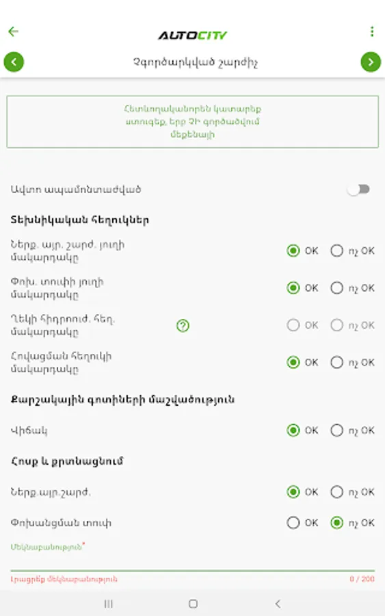 The AutoCity application will allow you to make a quality report on the inspection of the car, even without professional skills. It doesn't matter whether you are selecting a vehicle for your clients or contacting a professional to inspect the vehicle you are interested in, you will receive a high-quality inspection report that takes into account all the information you need.