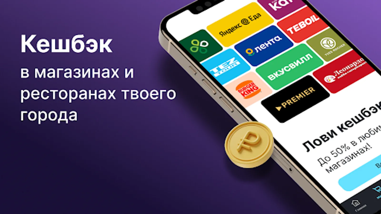 - up to 50% in your favorite stores and restaurants in your city.