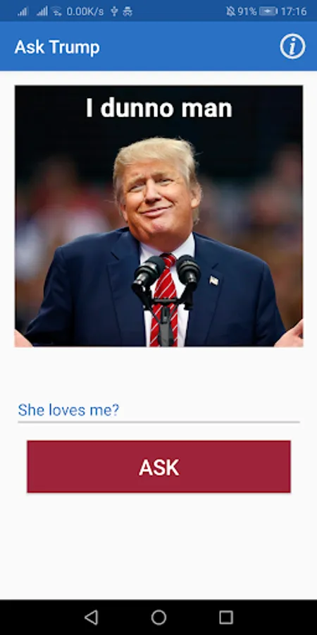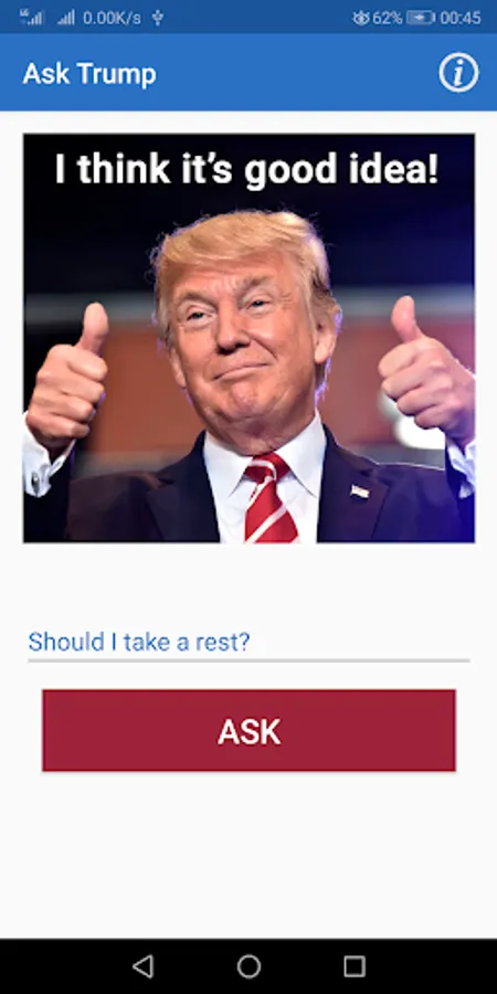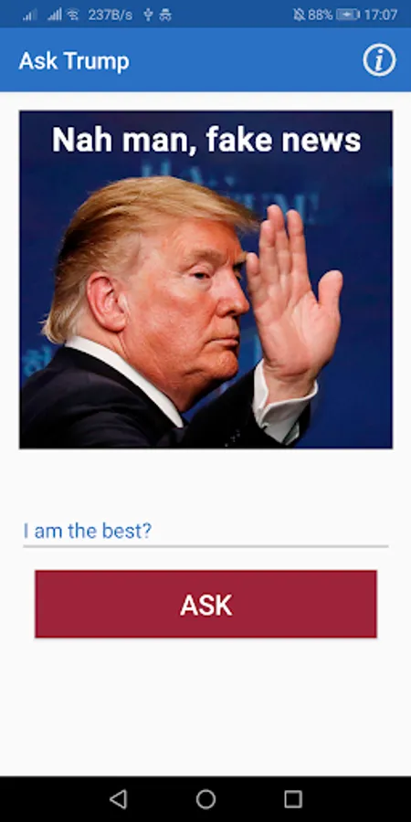 Have a tough choice? In this application, you can ask President Trump any question and get his answer. Just write your question in the text box and click “Ask”.
