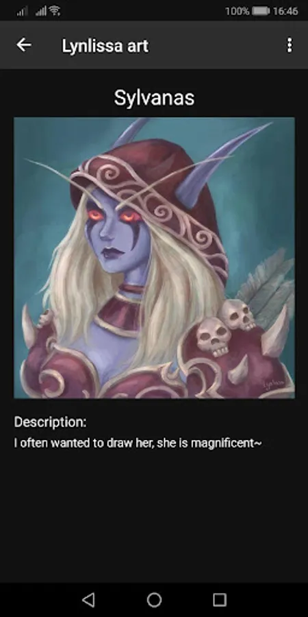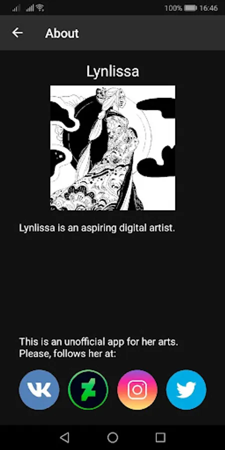 In this application, you can watch Lynlissa's arts and read their description.