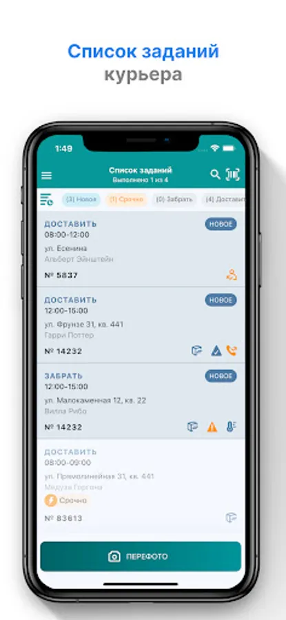 Mobile application for CDEK couriers, where you can: