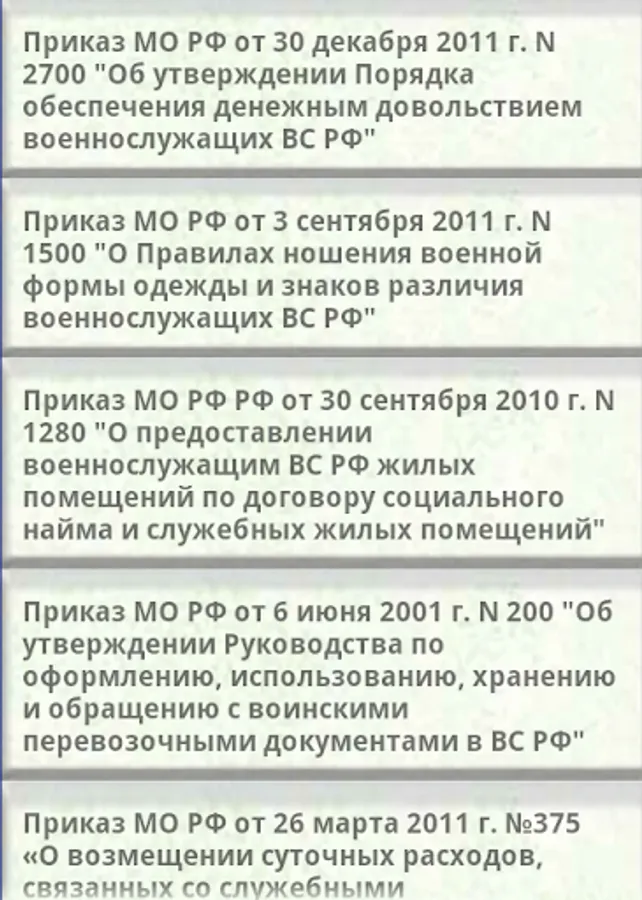 - Order of the RF Ministry of Defense of the salaries and other orders.