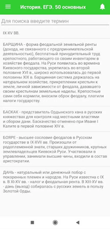 This application is addressed to students and applicants. Our assistant will save you time searching for the right information. Enough to fill in the search for the desired term. The application does not depend on the Internet, so it can be used even when there are “jammers” in the room or there is no high-quality connection.