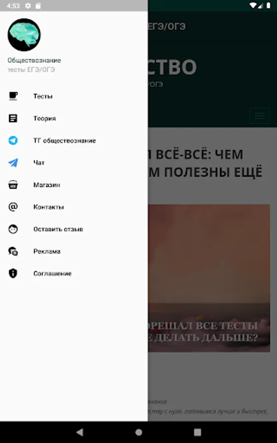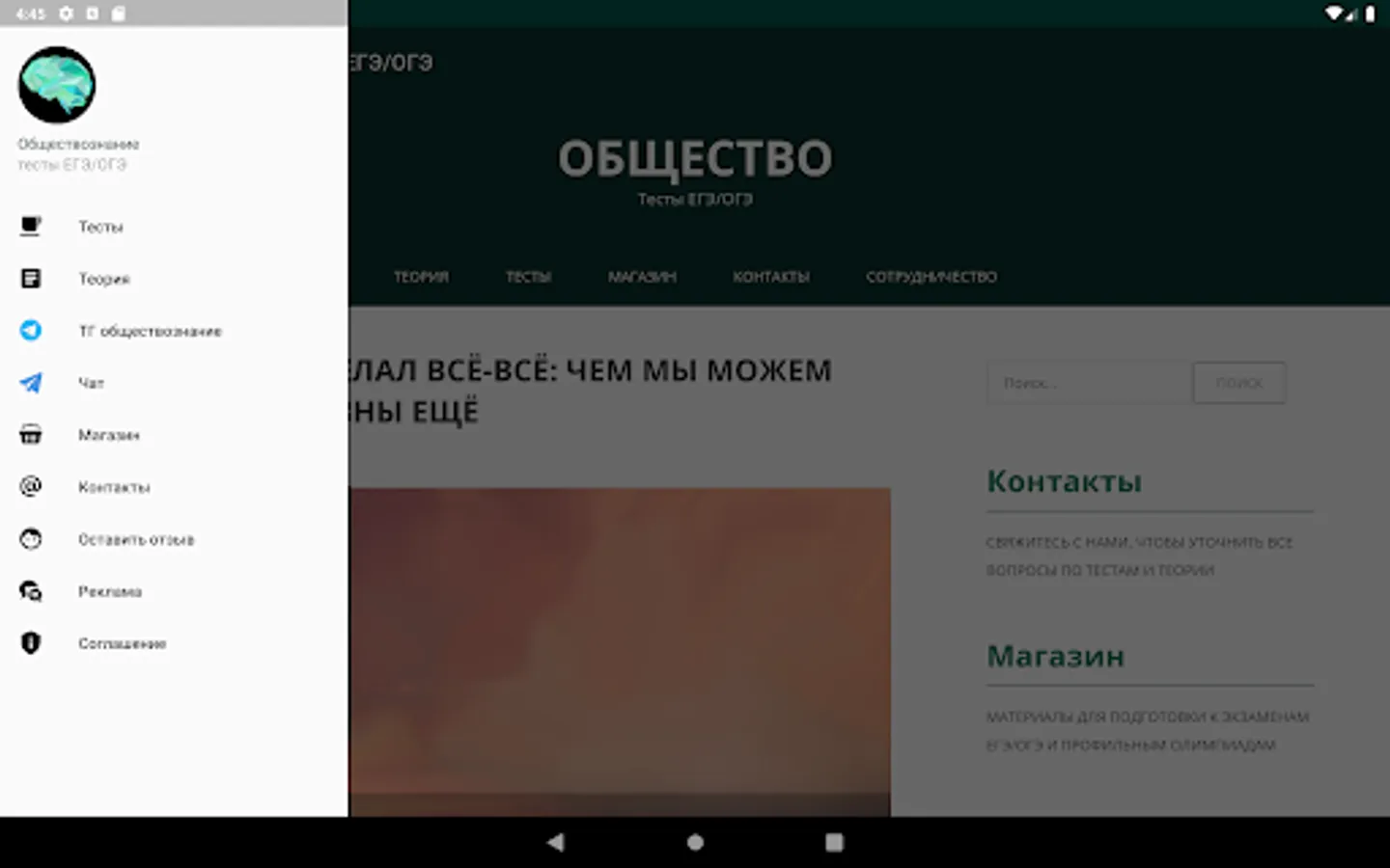 The application is designed specifically for highly effective preparation for the OGE and USE in social studies.