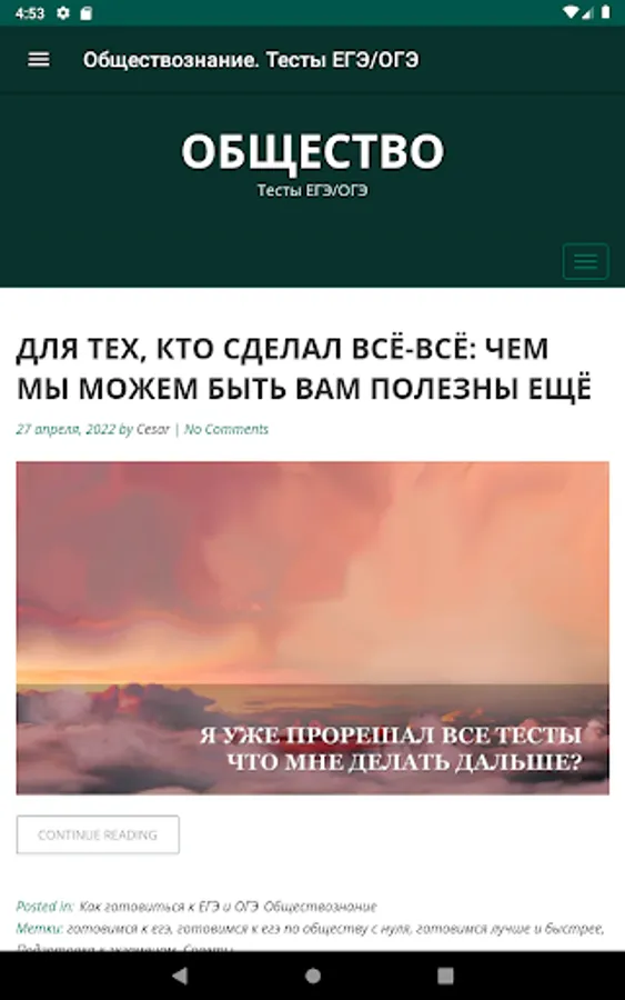 The application currently contains standard versions of the exam and exam, which can help prepare for exams. Also loaded are tests on the themes of the USE codifier, which will help hone individual topics in social studies.
