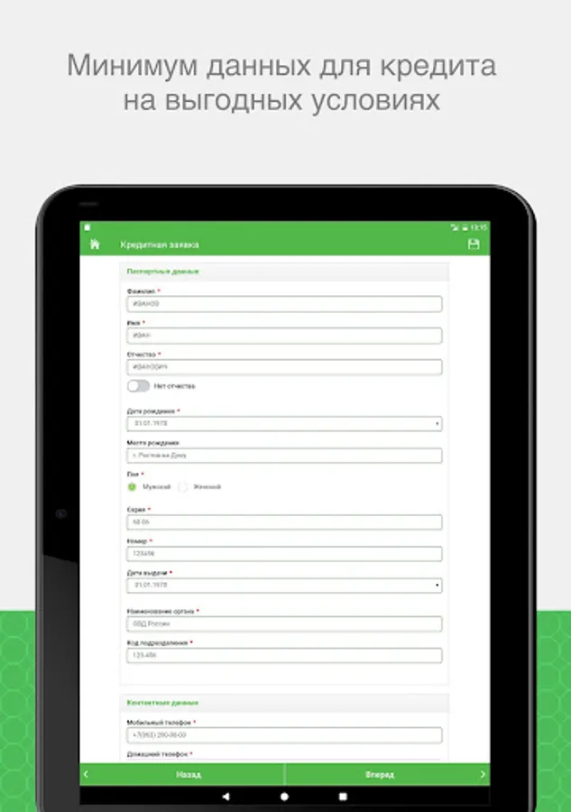 Questions on the application should be addressed to: app.loan@centrinvest.ru