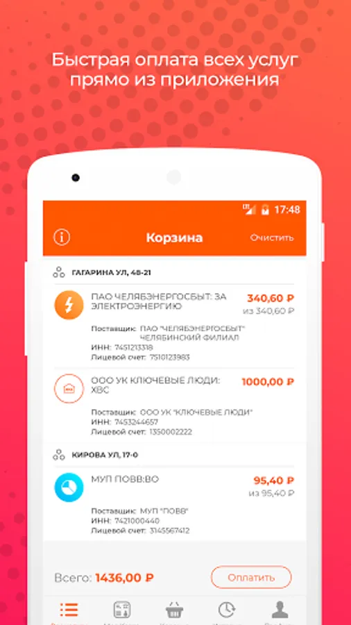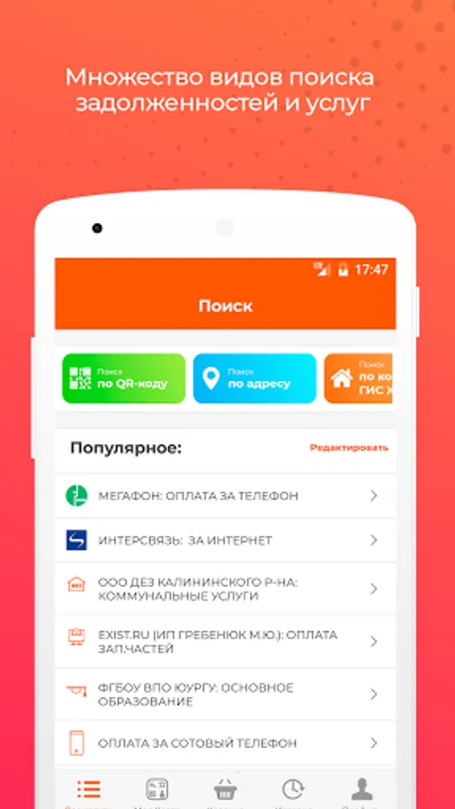 Convenient and modern, it opens up new possibilities for you. You can quickly, without hassle and queues, pay for utilities, cellular communications, Internet and other services using bank cards "Mir", Visa or Mastercard of Chelyabinvestbank or any other bank.