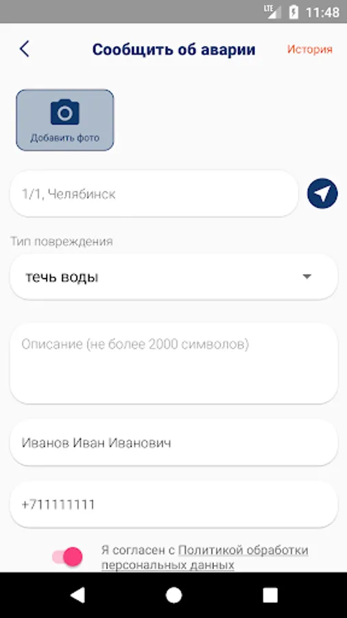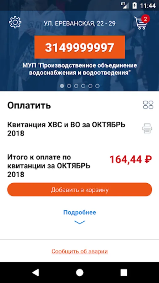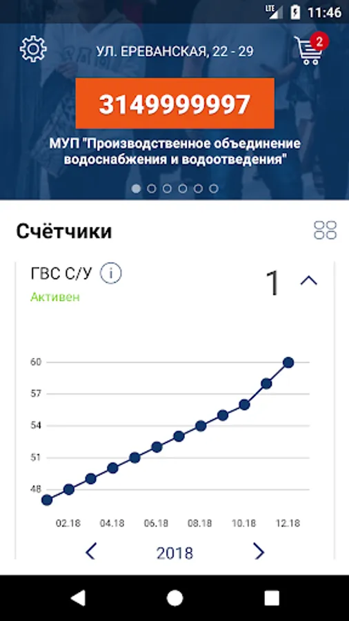 • transmit the readings of metering devices (meters) and see the history of the transmitted readings;