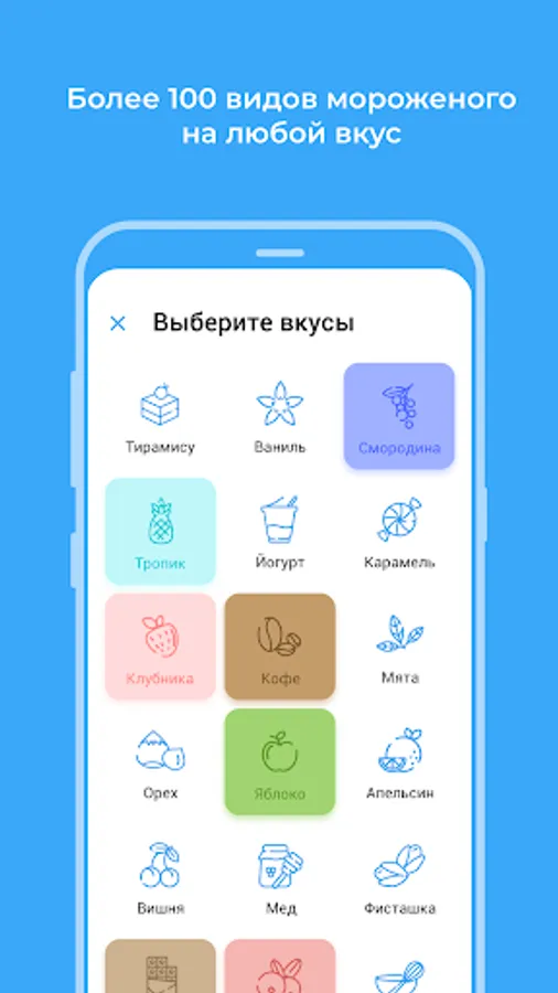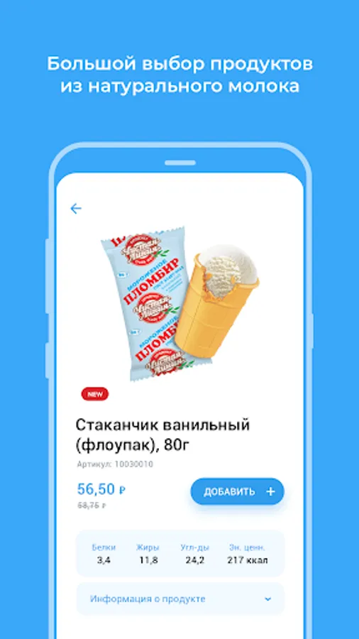 The application contains more than 100 types of ice cream, there are some that are not always found in retail outlets. Dairy products with a short shelf life are sold only in the online store. We make it in small batches at night, and in the morning we deliver the freshest!
