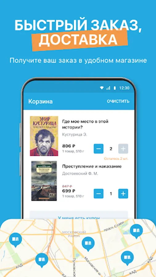 – Free delivery to Chitai-gorod stores and the Bukvoed partner network.
