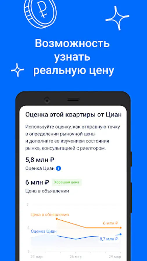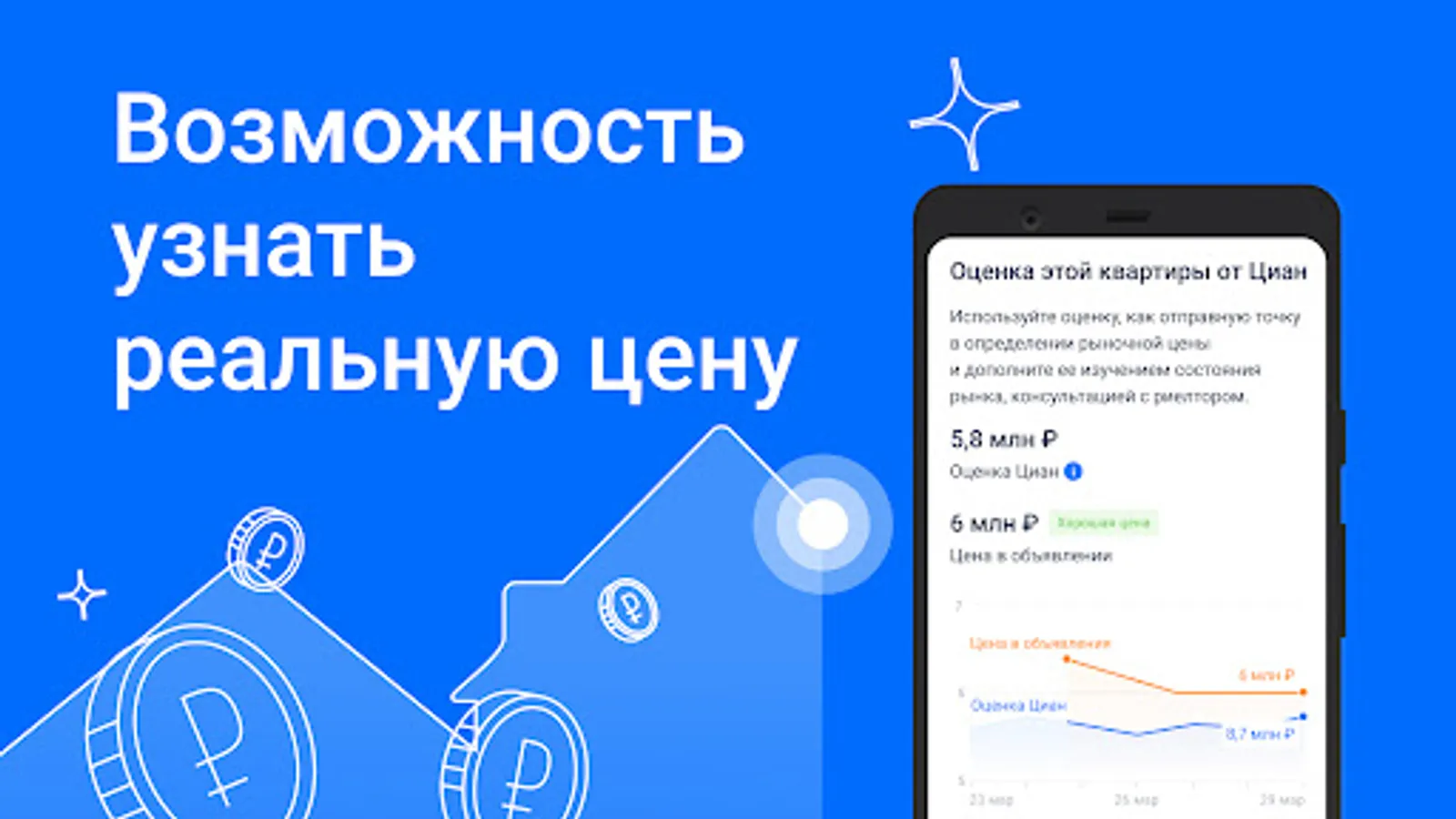 Cyan is a popular and convenient service for renting, buying and evaluating the value of real estate in Russia, as well as for calculating a mortgage. In the application, it is easy to find apartments in new buildings or in secondary housing, cottages, commercial real estate and much more. All ads have already been reviewed by our team of moderators.