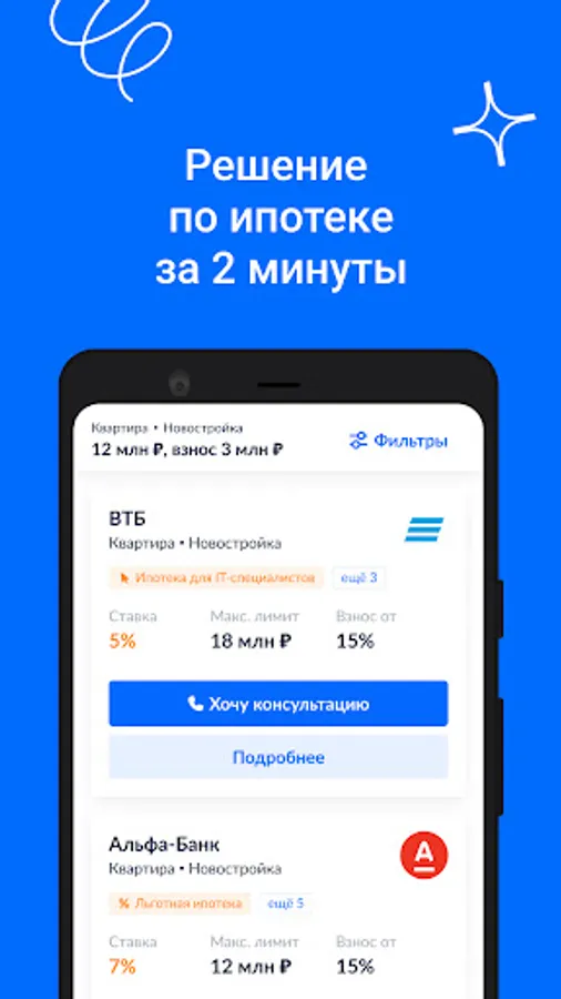 Mortgage. A service with which you can send one questionnaire to 7 banks at once and receive personal offers in just 2 minutes! You just have to choose the one that suits you personally.