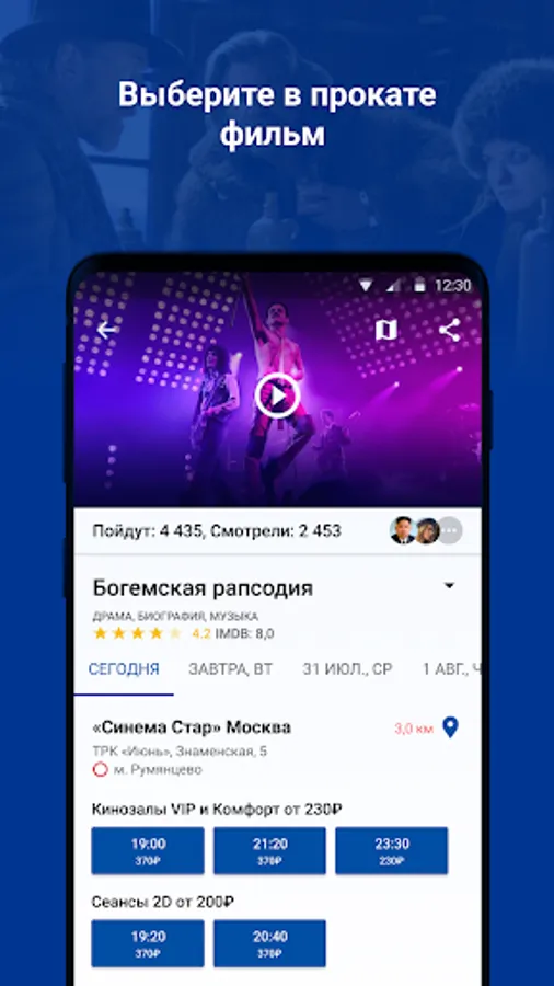 With the application released by the Cinema Star network together with the Kinokhod company, you can buy tickets at any time anywhere in the city. In a cafe, on a walk, in transport and even in the most unexpected places - without restrictions. And what is even more pleasant - without extra charges, commissions and any other markups.