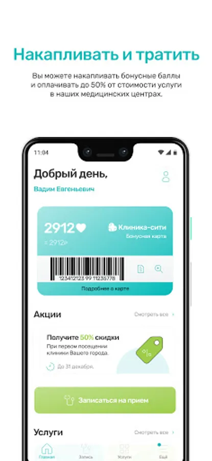 - Accumulate bonuses and spend them on subsequent services in our medical centers