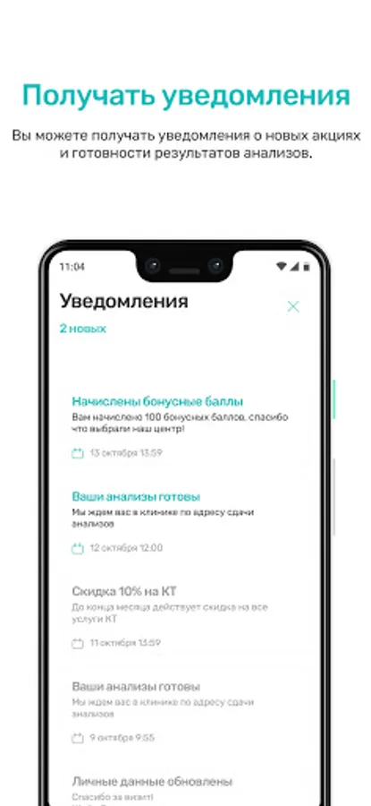 - Receive notifications about the readiness of your analyzes and various notifications with special offers and promotions