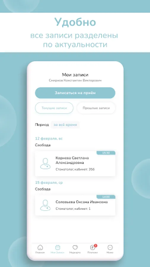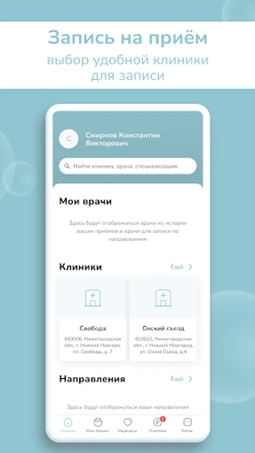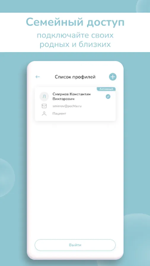 The application is a personal account of the patient with access to all personal data and additional useful functionality: