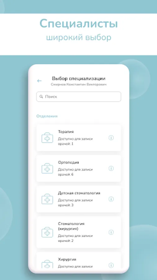 - access to the current schedule of all specialists