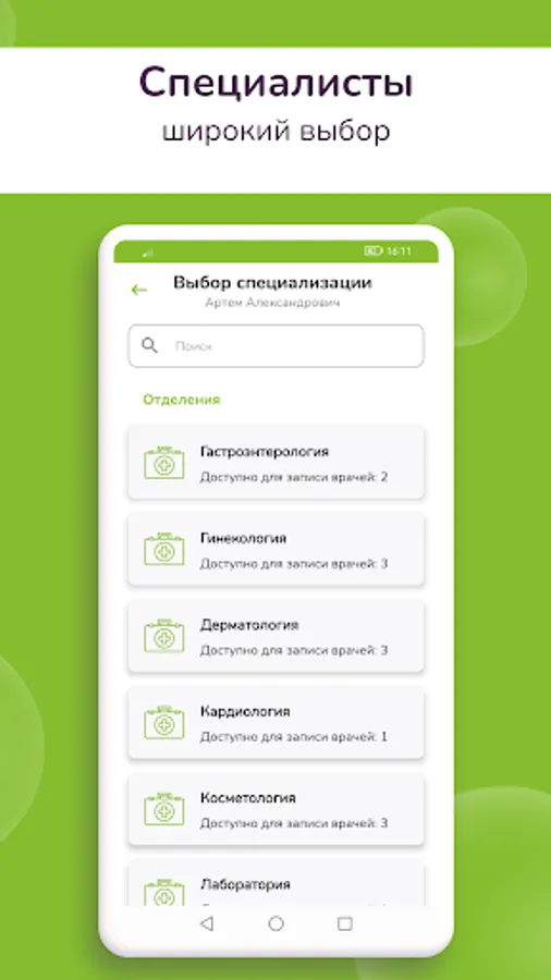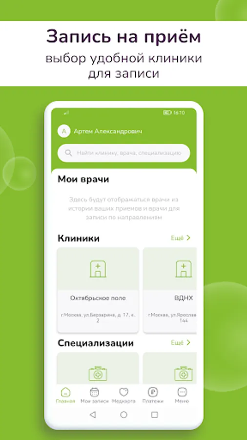 Fast personalized appointment with a doctor. Easy selection of the nearest clinic. Urgent or non-standard appointment appointment.