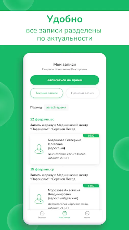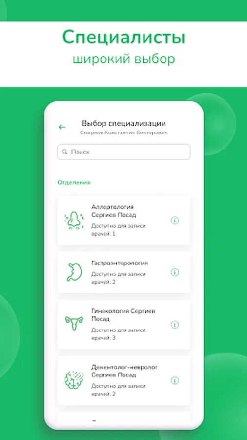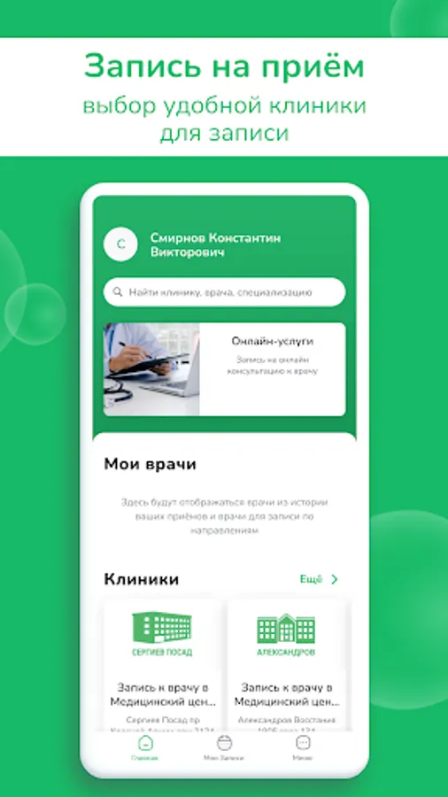 - Independently make an appointment with a doctor for a full-time appointment at a clinic in Sergiev Posad, Aleksandrov.