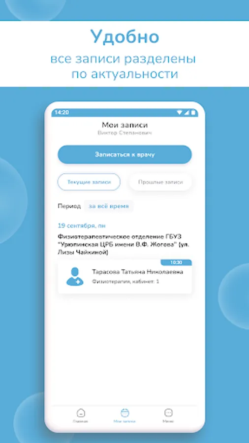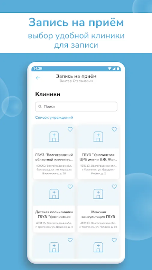 The application is intended for making an appointment with a doctor in medical organizations subordinate to the Health Committee of the Volgograd Region with the ability to view your medical history.