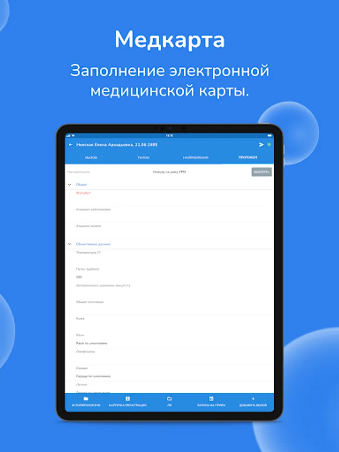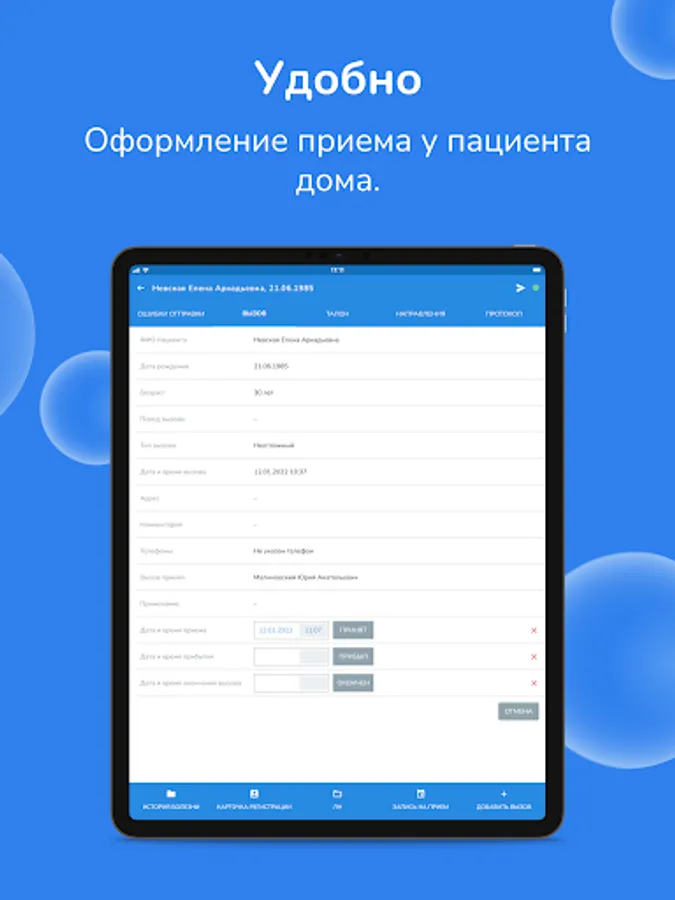 Infoclinic.URM is a comprehensive solution for organizing the out-of-office work of a doctor, which has the necessary set of functions for admitting a patient: filling out an electronic medical record, creating referrals, issuing electronic certificates of incapacity for work, maintaining an appointment, making an appointment with a patient, synchronizing information with the MIS.