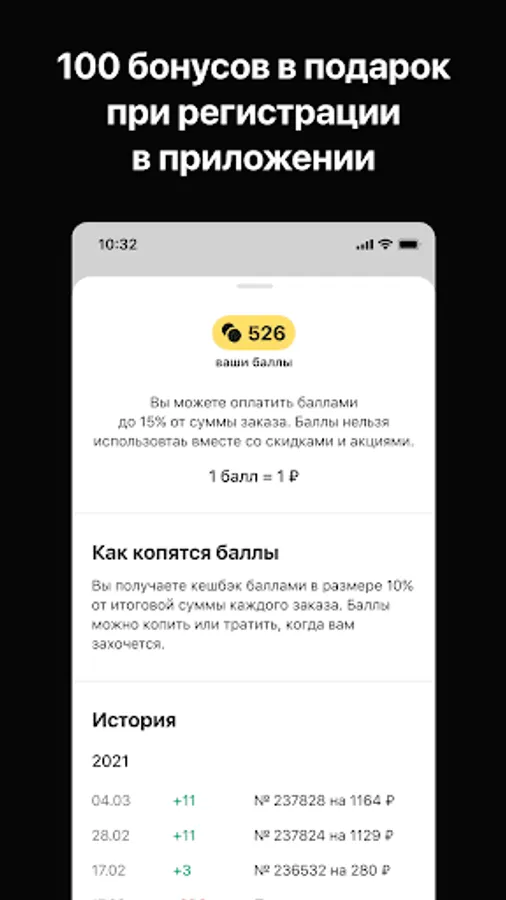 We give 100 welcome points when you download the application. Bonus program, promotions and gifts.