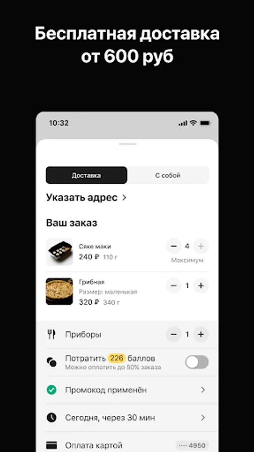 The minimum order value for free delivery is 700 rubles! You can pay by credit card, as well as by card or cash to the courier.