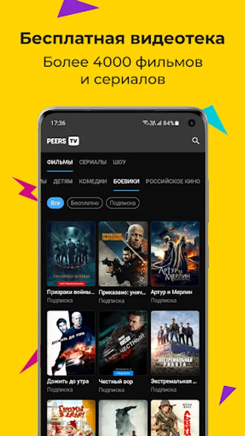 👋 Get acquainted! Peers.TV is a free service for watching TV channels online, popular series, thousands of HD movies and children's cartoons. The functionality of the application is very wide: TV program of all channels, IPTV player, recording of programs, creation of playlists from your favorite TV shows.