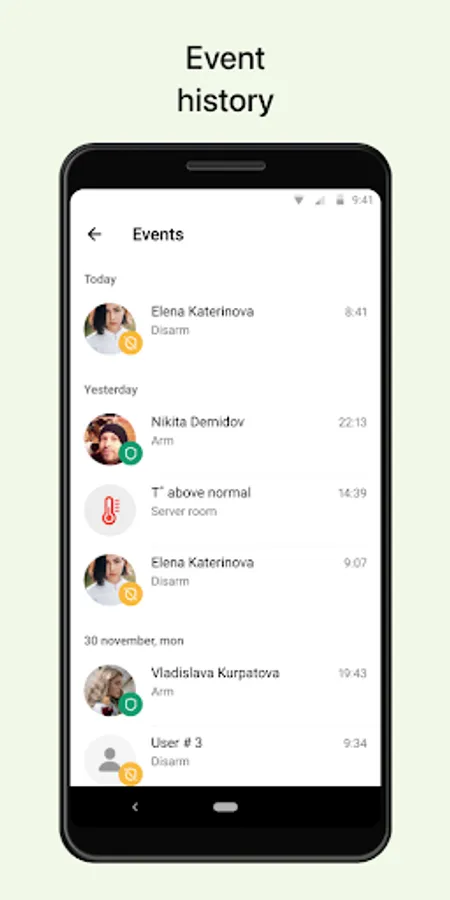 — Event feed shows what is happening at your site: when the children came home from school, employees disarmed the security system in the office, the power went off in your country house.
