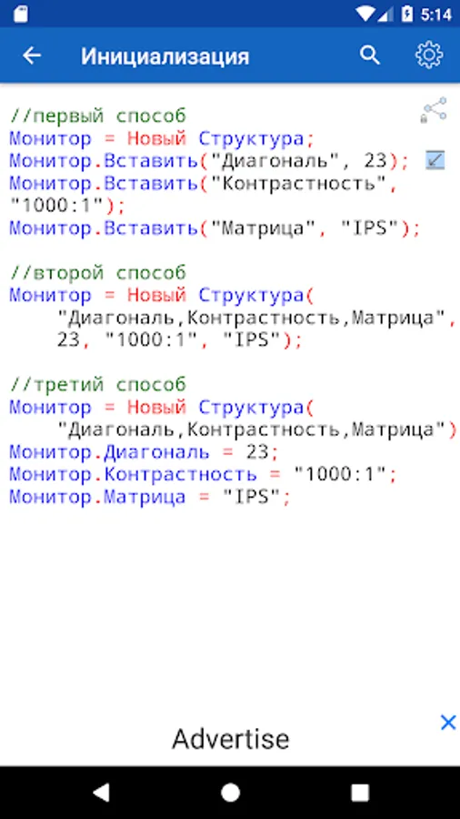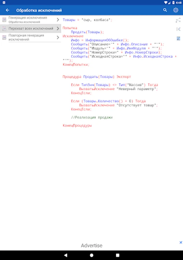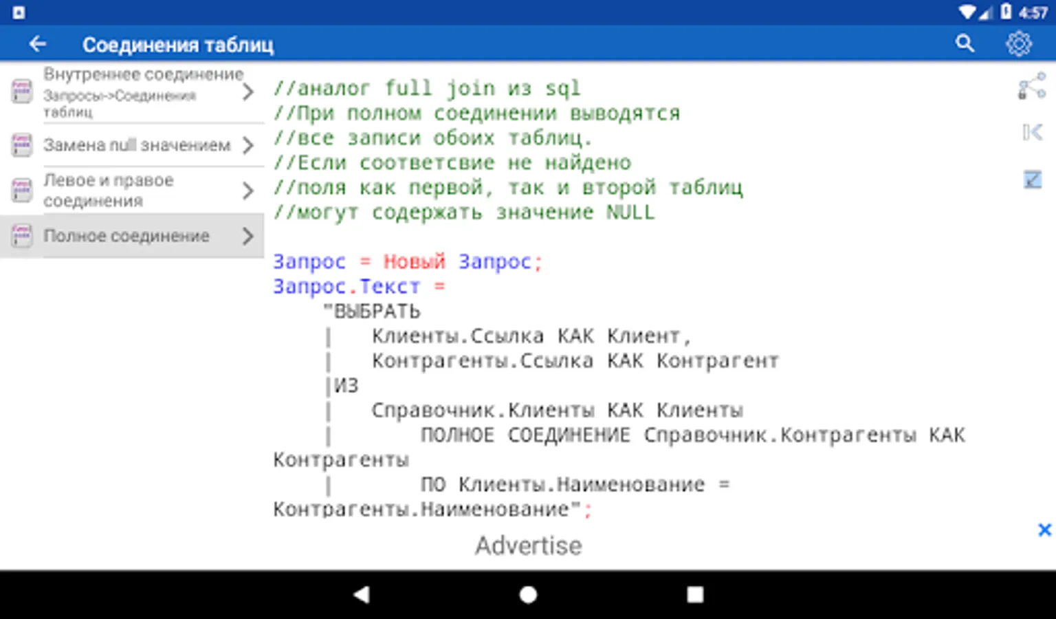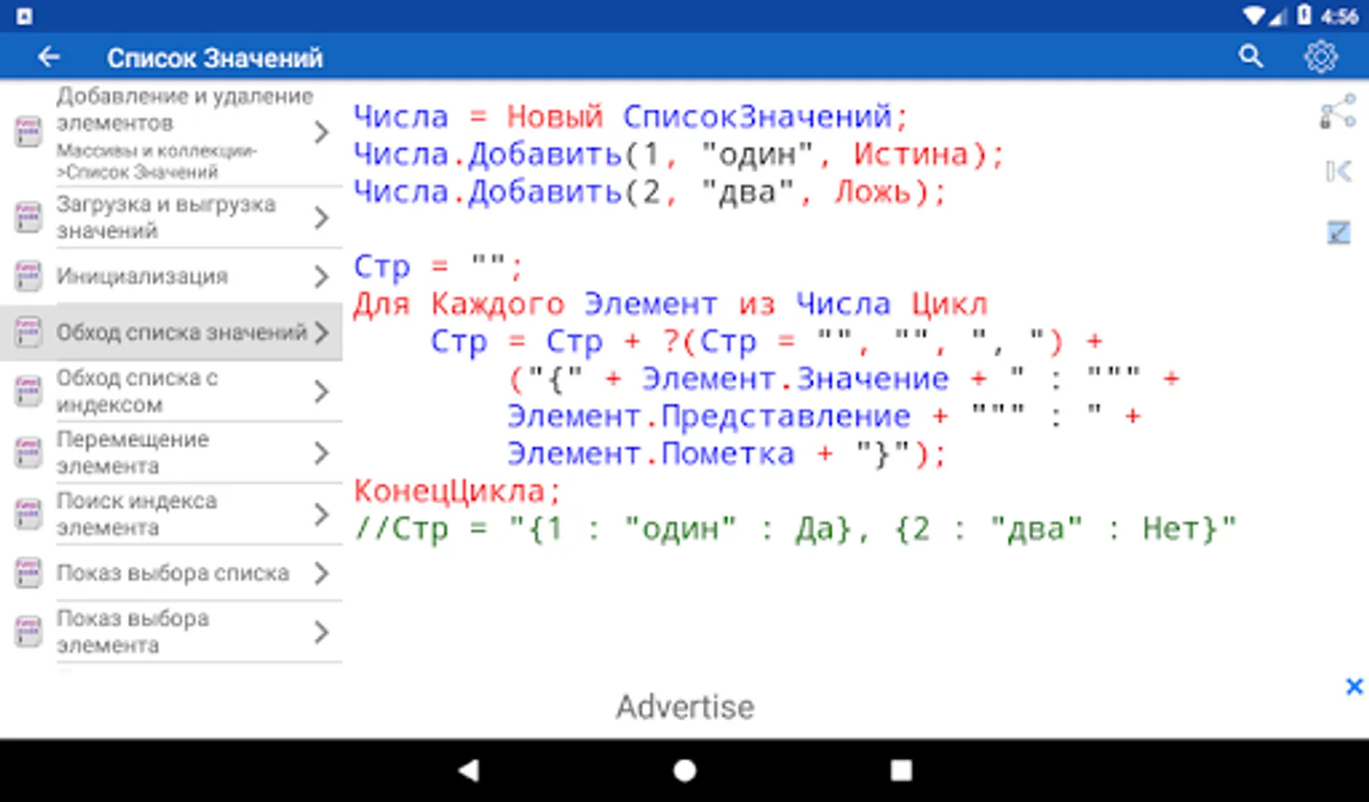✓ The application is a good tool when taking an exam or preparing for an interview, because. contains a reference book of typical, frequently used operations in the 1C language.