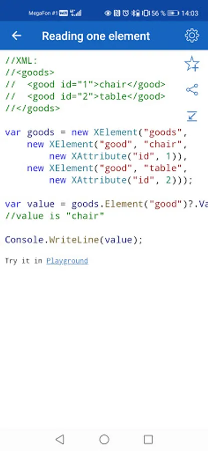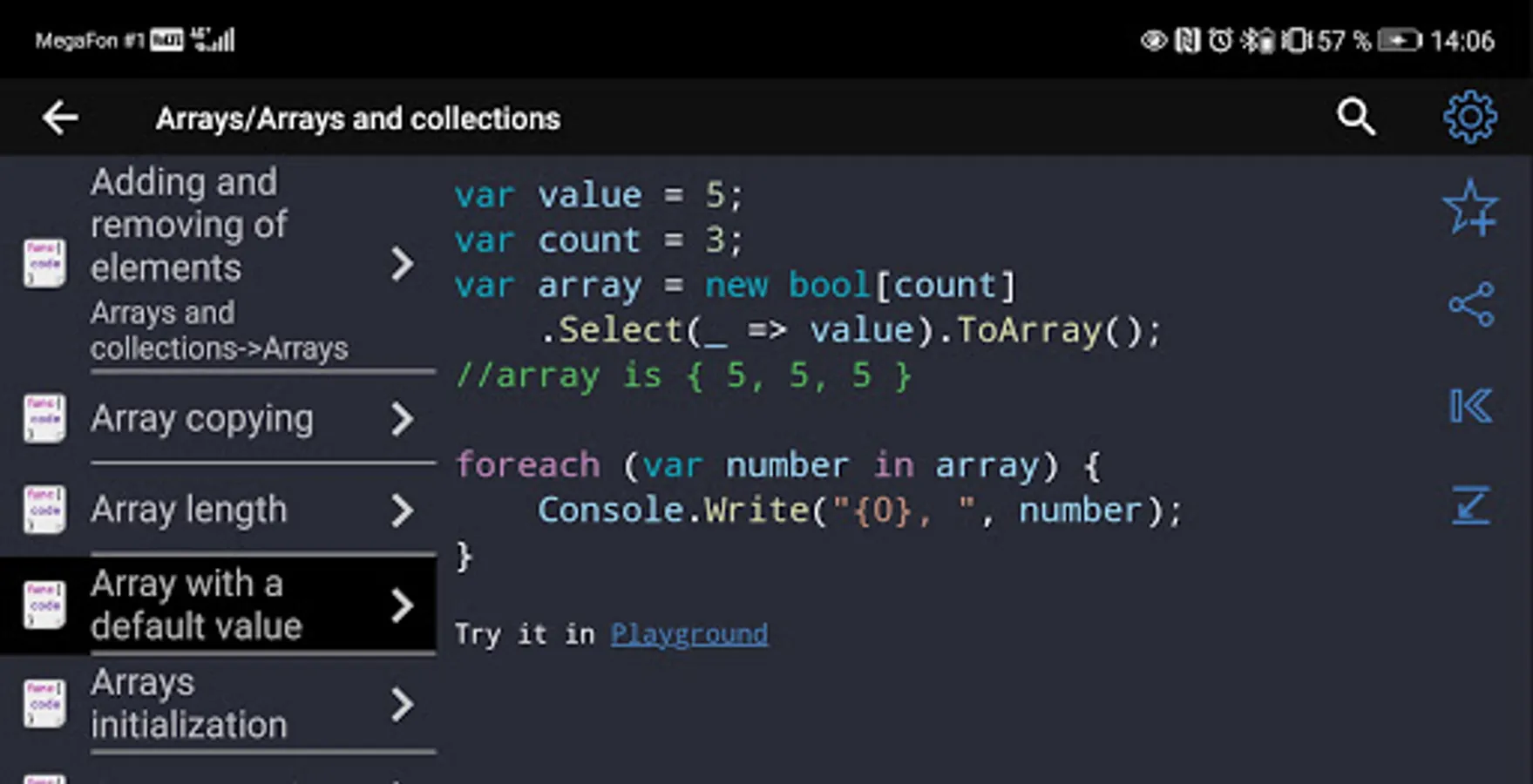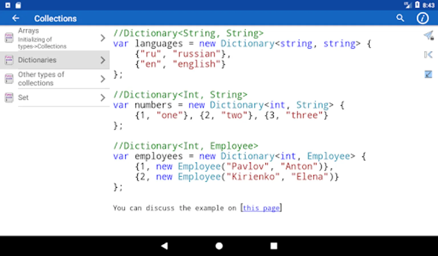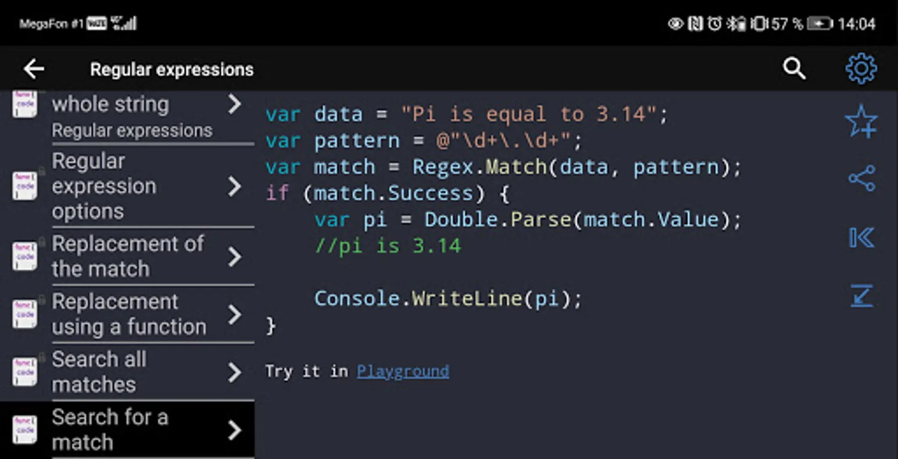 ✓ Learning C# syntax on specific code examples. How to get a substring? How to declare a generalized method? These and over 350 of other code samples for C# are available in the application.