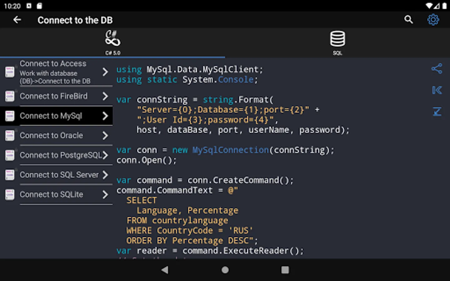 These and over 400 of other code samples are available in the application.
