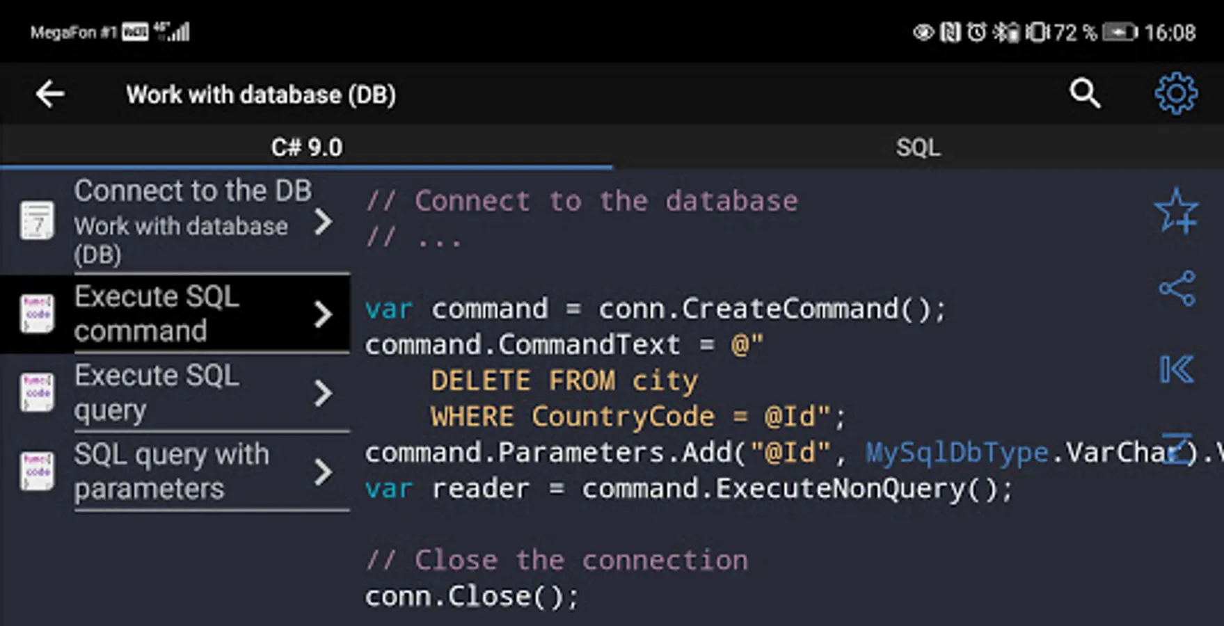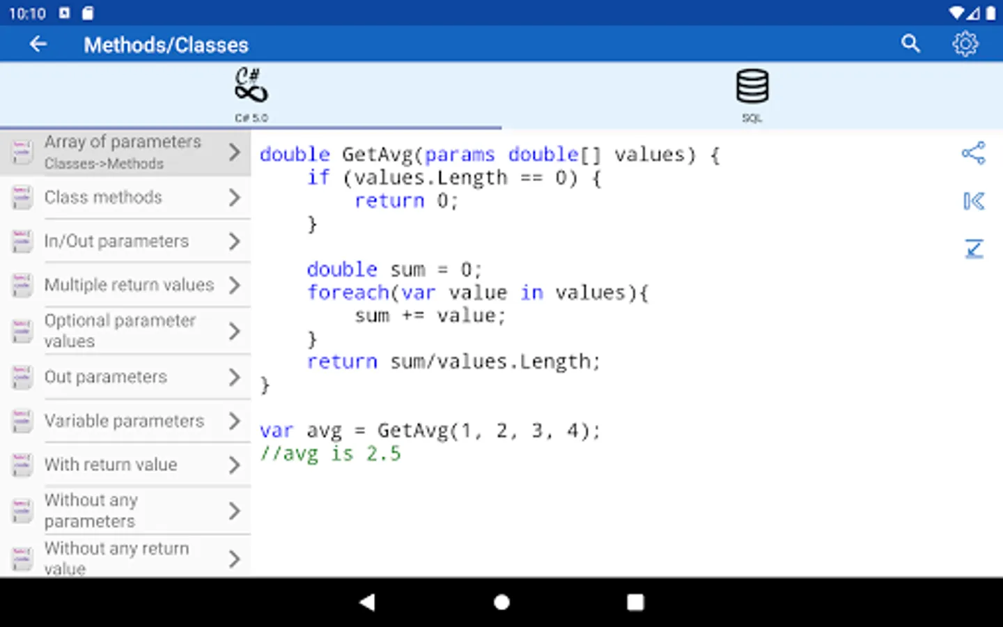 ✓ The best examples of codes from books and specific internet resources are selected in the program. Finding the best decision on the Internet may demand hours of working time. Ready for use and tested code "recipes" are included in the application