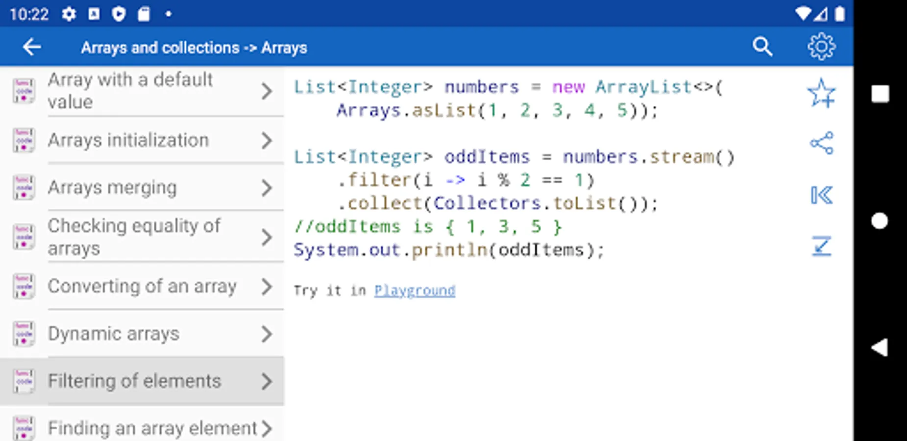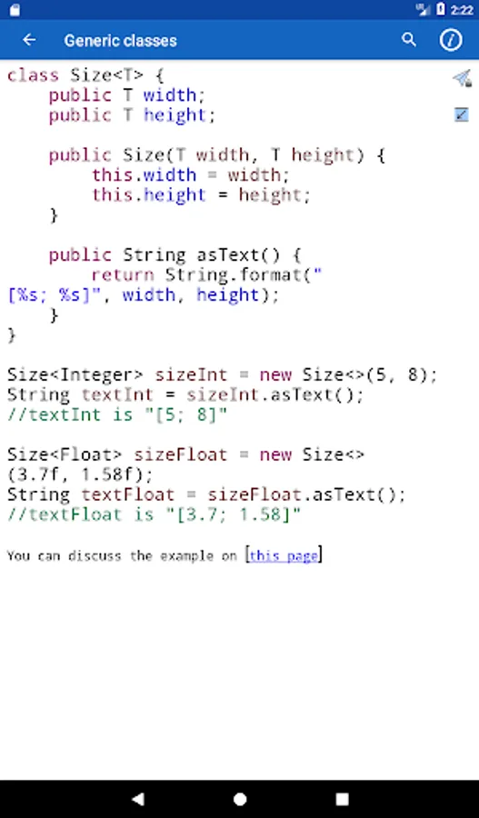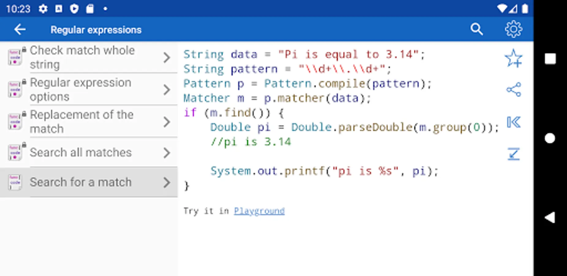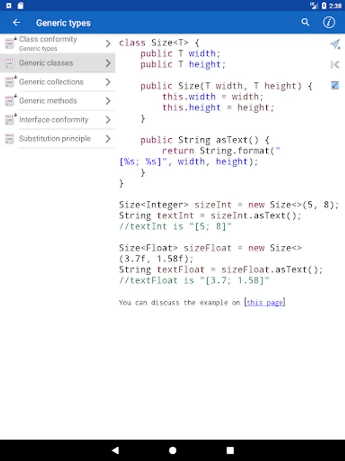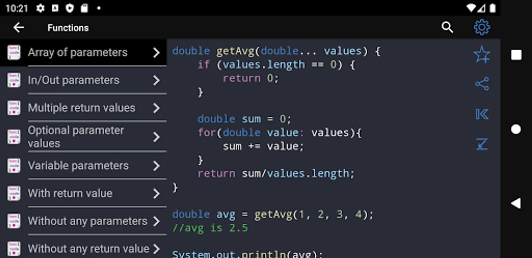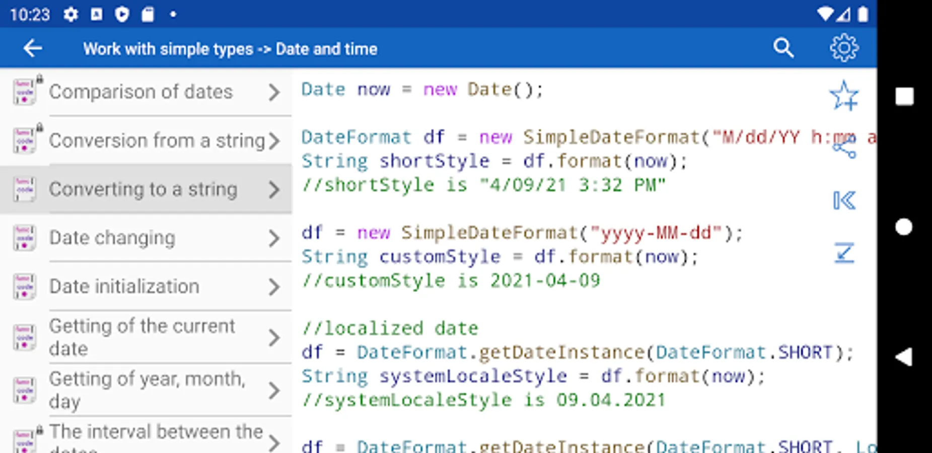 ✓ Learning Java syntax on specific code examples. How to get a substring? How to declare a generalized method? These and over 300 of other code samples for Java are available in the application.