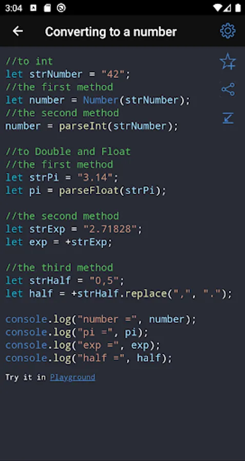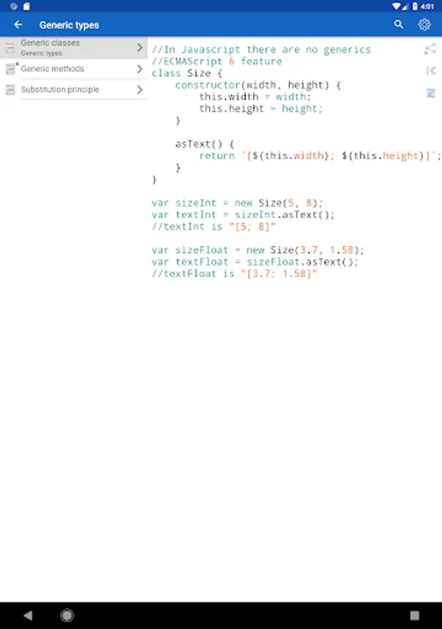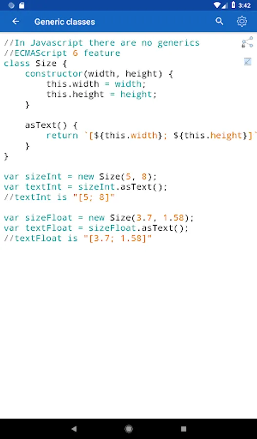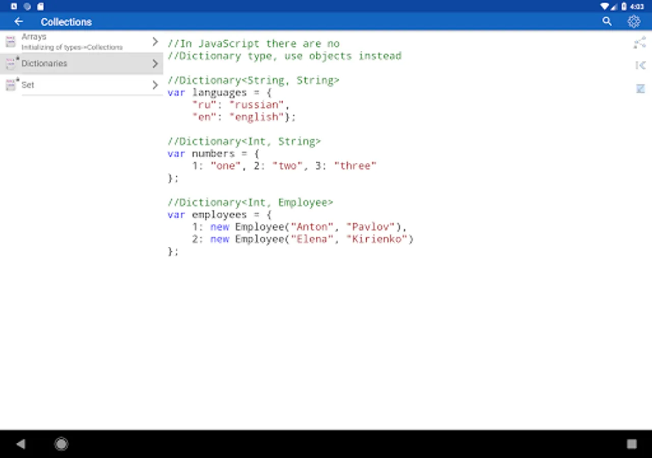 • The application is a good tool during the exam or the preparation to the interview because it contains a reference to frequently used operations in different programming languages.
