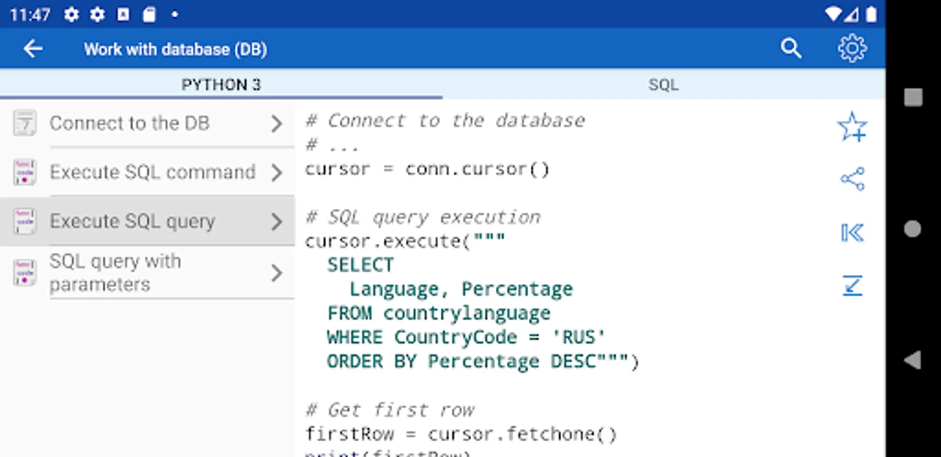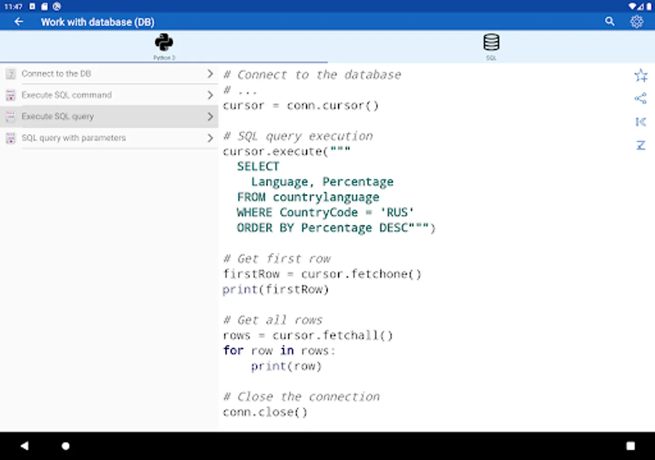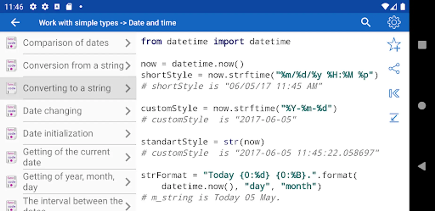 ✓ The best examples of codes from books and specific internet resources are selected in the program. Finding the best decision on the Internet may demand hours of working time. Ready for use and tested code "recipes" are included in the application