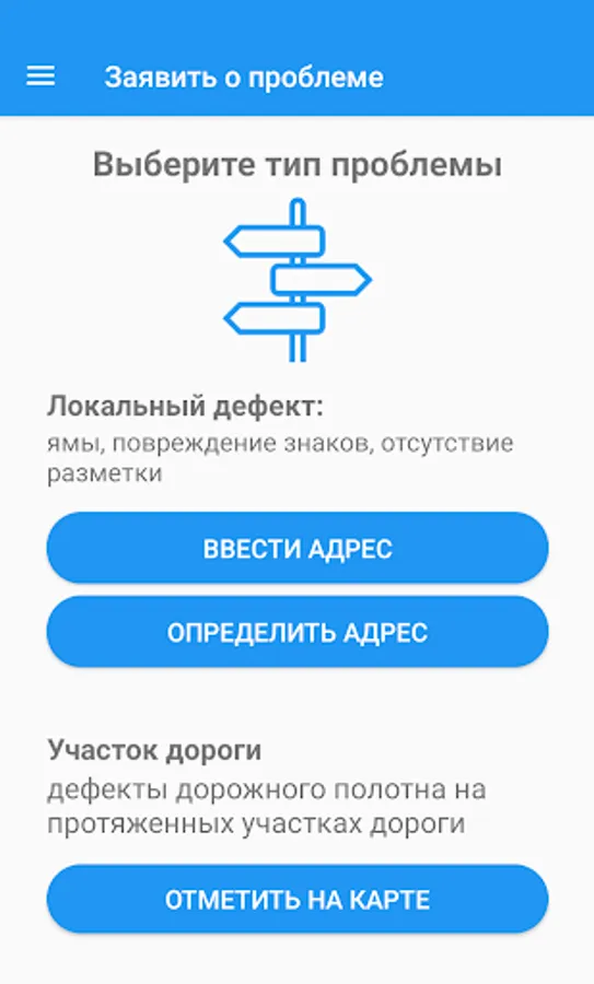 Using the Killed Roads mobile application, you can mark a section of the road that is in a non-normative state and local defects, such as: pit, failed hatch, incorrect marking or missing marking, and also report problems related to traffic signs, traffic lights, violation of the technology of repair.