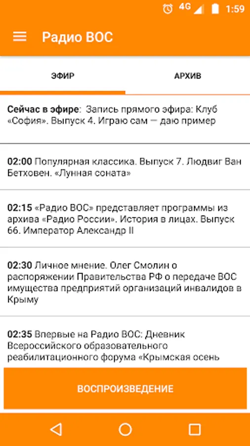 Internet radio player of All-Russian Society for the Blind.