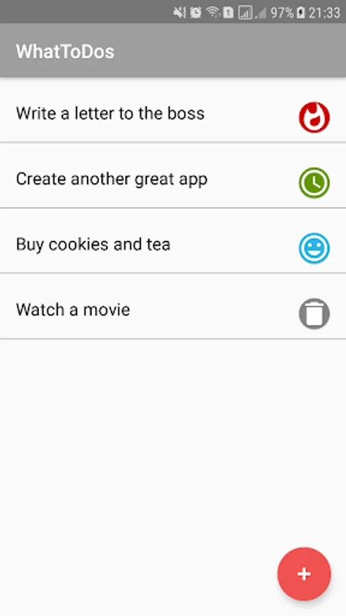 You don't know what task to take? Are you losing focus in an endless stream of pressing issues? The WhatToDos application helps you separate the wheat from the chaff and get rid of the habit of wasting time on empty and meaningless pursuits.