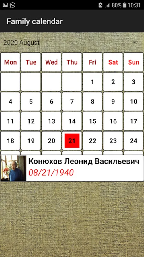 The application will remind you in advance about the upcoming birthday of your family member or relative.