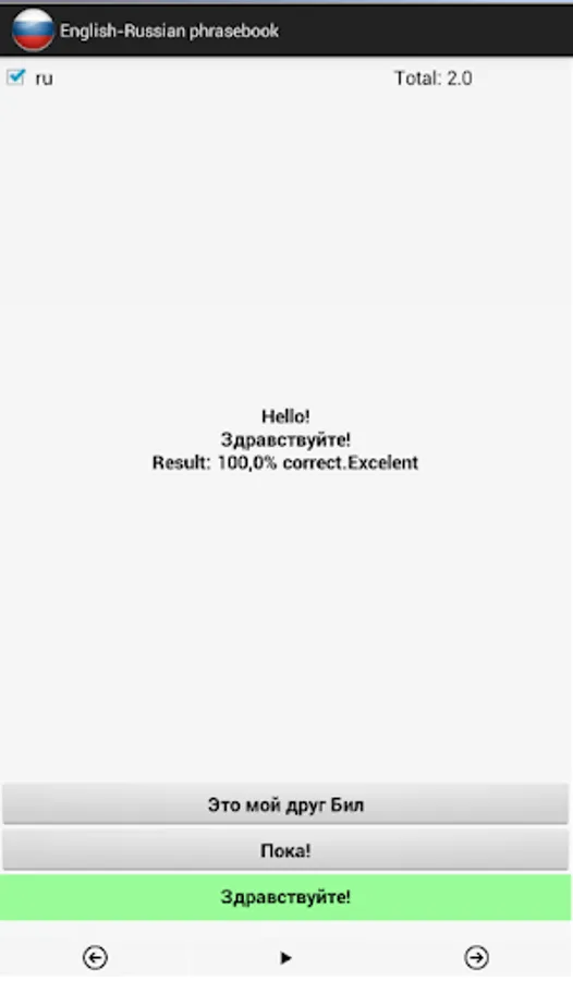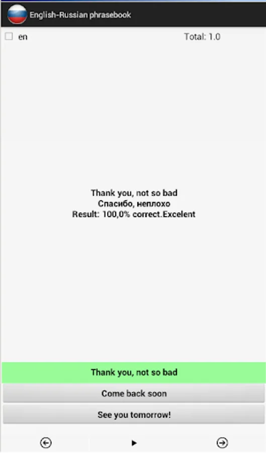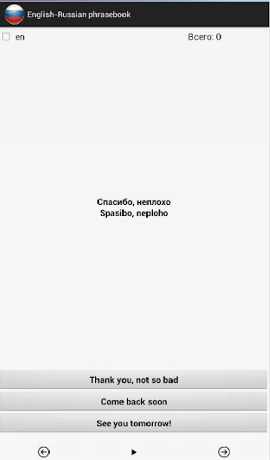 It’s true that anyone can speak another language.English-Russian phrasebook helps you interact with people who know Russian language.Recommended app for tourists and business people visiting Russia. With over 1000 spoken and phonetically written phrases you can easily speak and understand the local people. Our program also has two language quizzes that help you learn phrases in a fun way.
