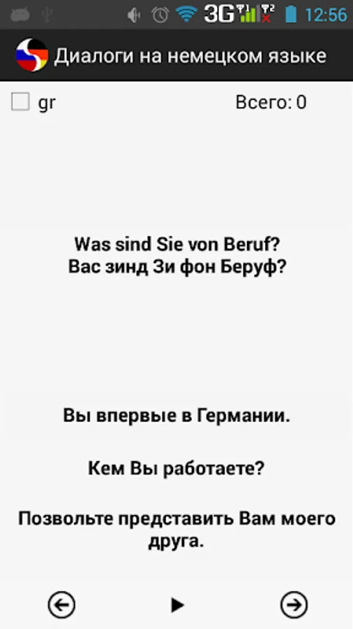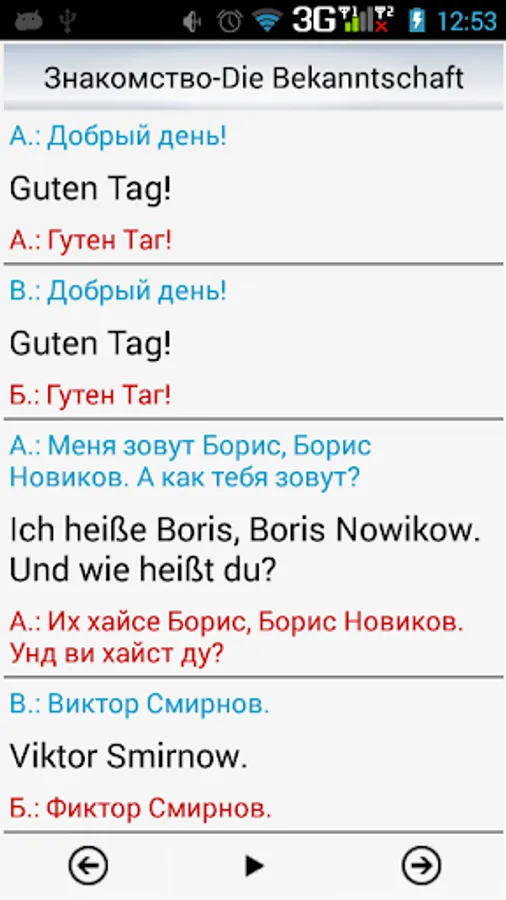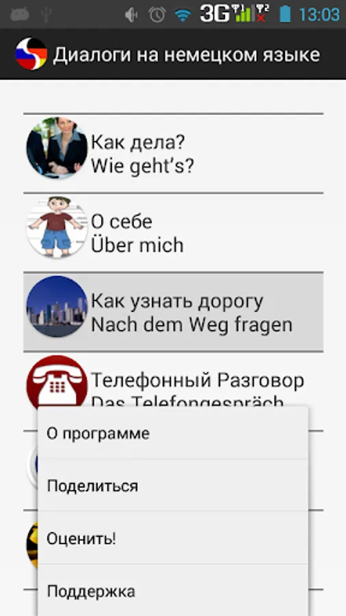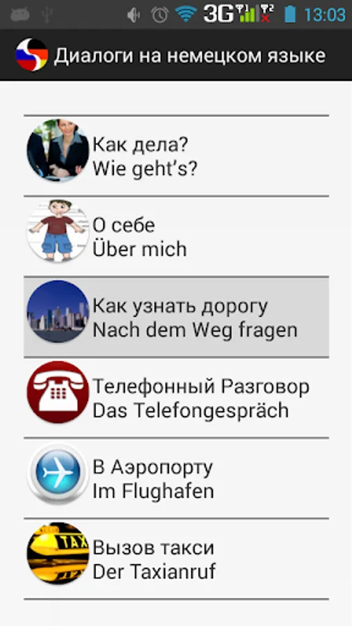 Dialogues, divided by topic, will help you quickly navigate the situation and help in conversations. Greeting, Meeting, meeting, About Me, phone calls, Taxi, accommodation - everywhere you will be able to communicate, even with the lowest knowledge of the language.
