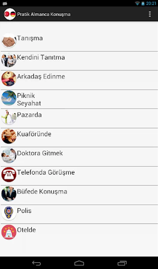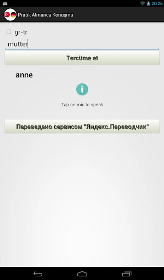 You can use the program as a learning German. German Turkish translations are available and tükçe German tercume. (Oli dictionary) spoken discourse and the practical as a good opportunity for easy learning.