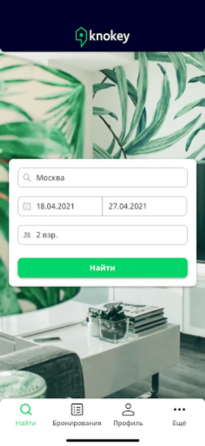 Knokey provides the possibility of short-term (and not only) rental apartments and is distinguished by a contactless system of interaction with clients. Using Knokey, you can rent apartments without contacting the management company for registration or for keys - access to the apartments is carried out through interaction with the Knokey software application. The application allows you to find, select, book and pay for the rent of apartments, as well as get access to the apartments using a special digital key combination. Using Knokey you save your money without overpaying aggregators and time.