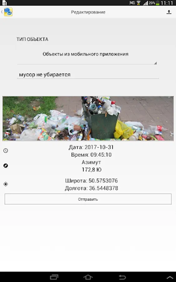 FotoN will allow you to easily record events with structured descriptions on your smartphone or tablet, getting coordinates of the current location and azimuth in the direction of photography. On-line and off-line modes are supported. If there is an Internet connection, the events are transferred to the server of the "GeoS" system and displayed on the map in the form of event objects.