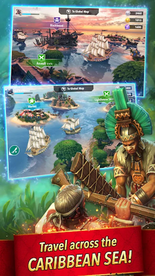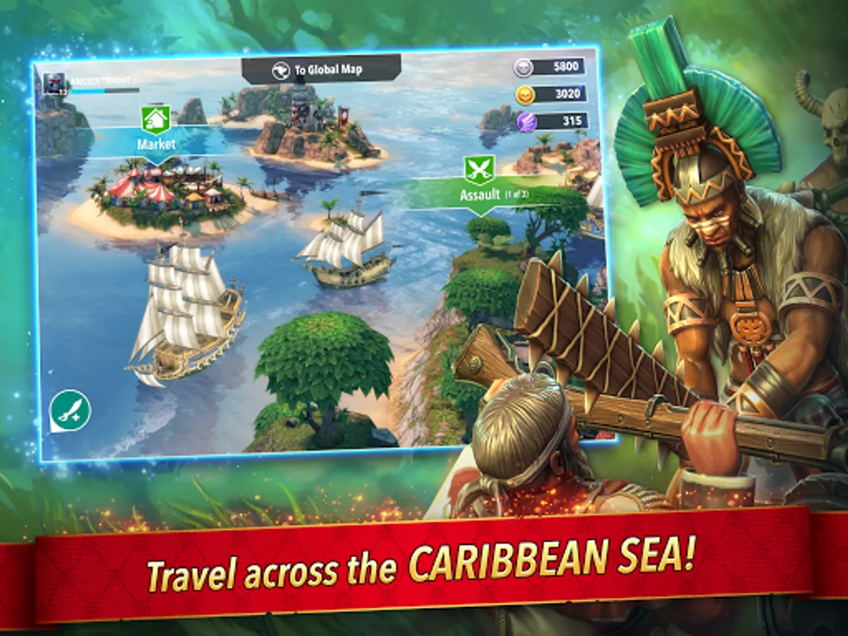 Dreaming of being the true captain? Here's your chance! Gather different well-known characters, including Francis Drake, Blackbeard, Montezuma, Columbus, and many others – each with their unique abilities, stats, and factions. Upgrade your heroes to become more powerful, conquer the seas and find the treasure island!